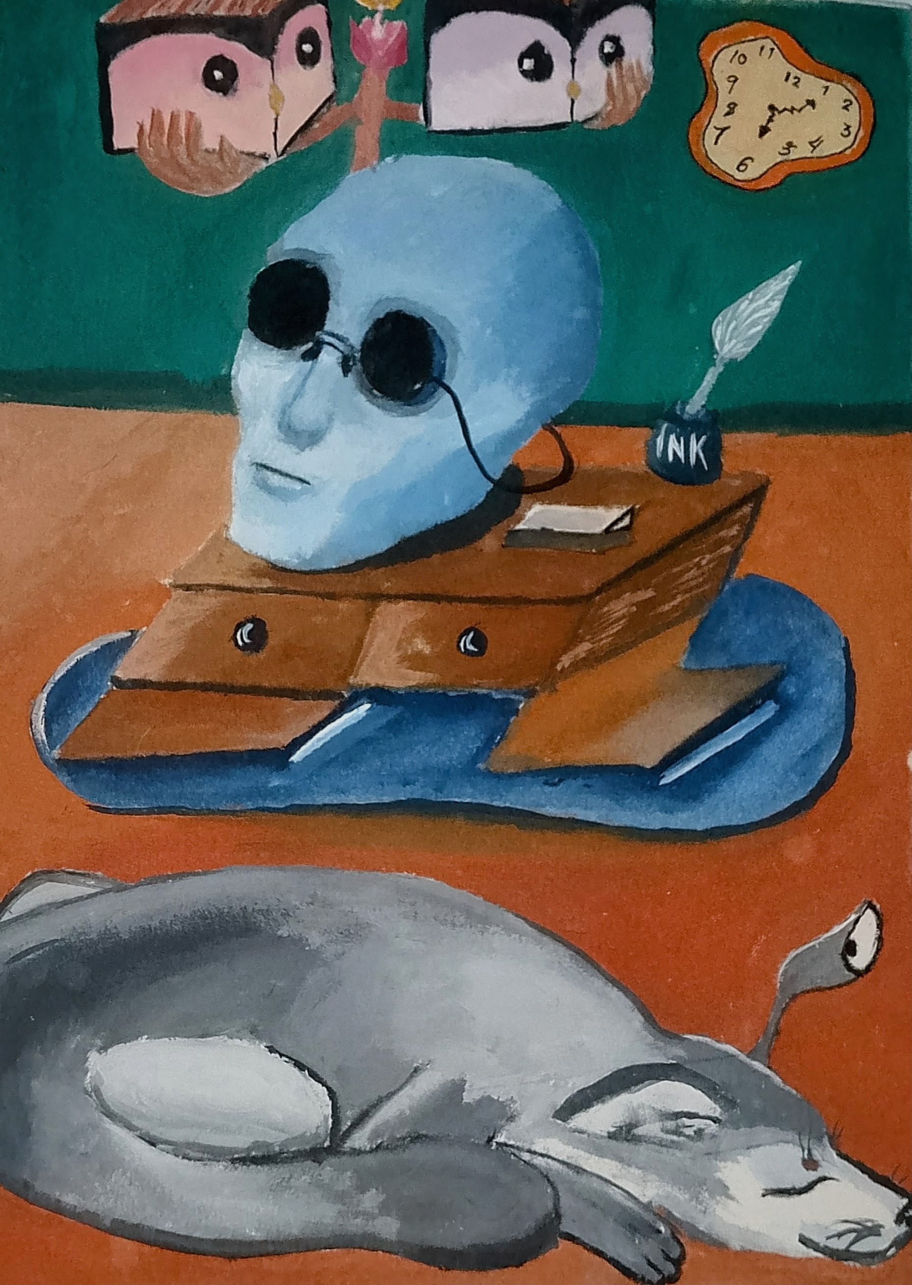 Watercolour, marker and gel pen